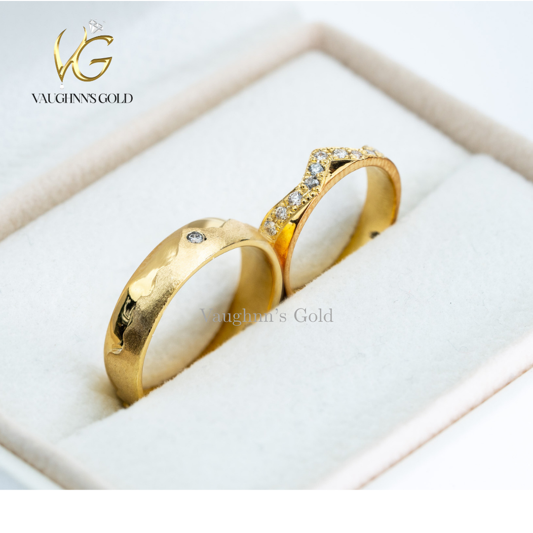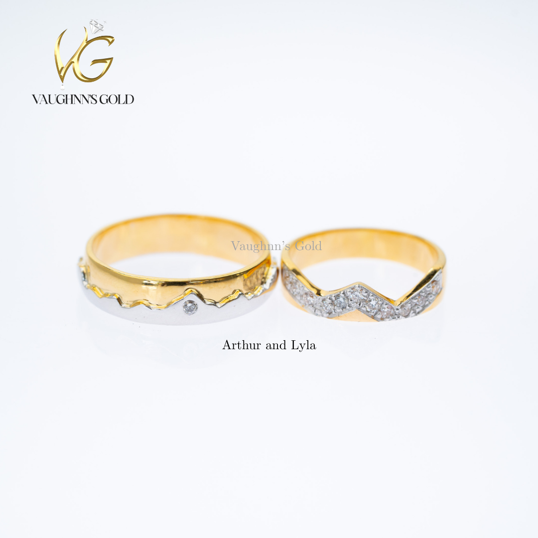 Arthur and Lyla wedding rings celebrate timeless elegance with solid yellow gold craftsmanship. Each band features carefully selected diamonds—0.03ct and 0.02ct—that catch light with subtle brilliance. Perfect for couples seeking understated luxury, these rings blend classic design with refined quality, marking your commitment in enduring style.