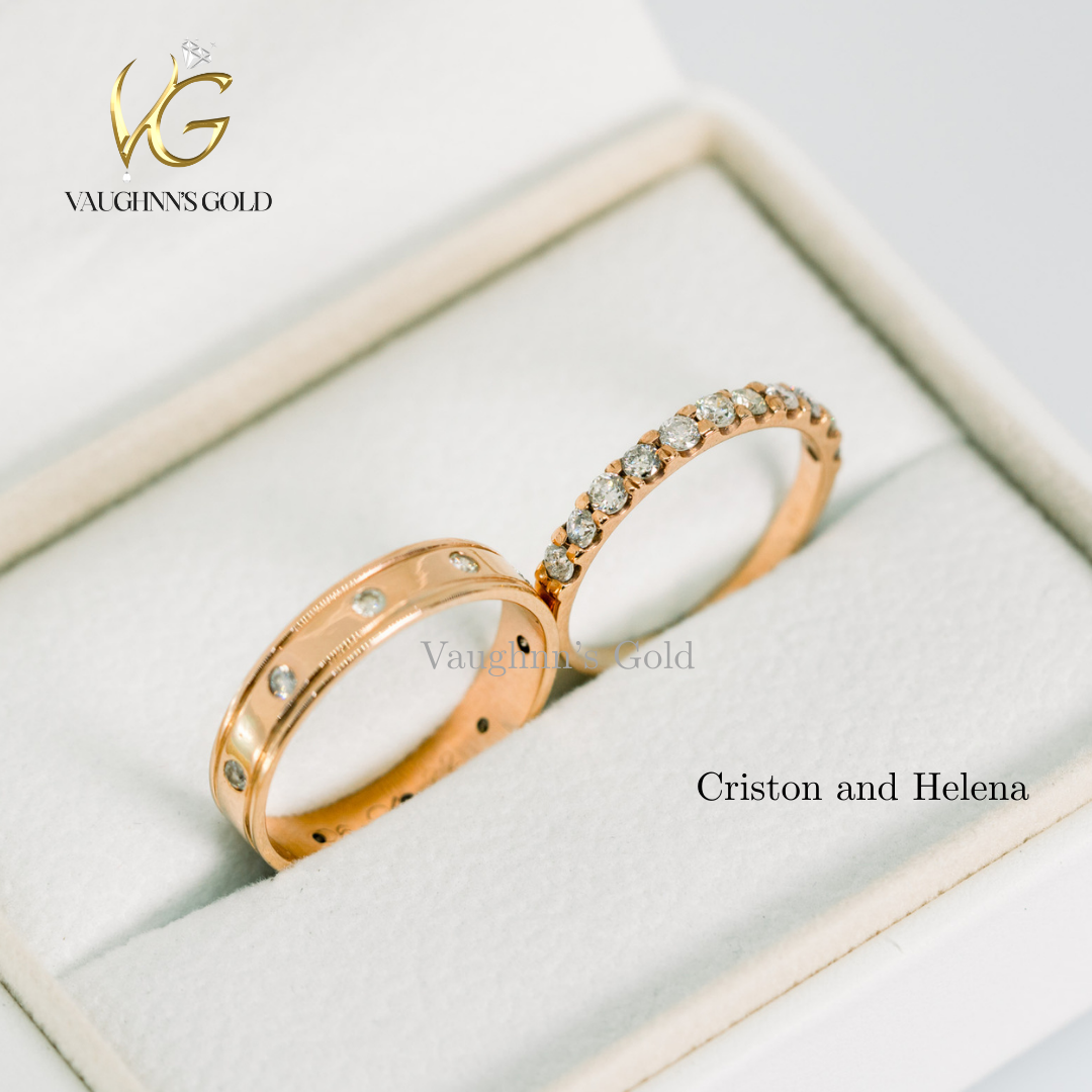 The Criston & Helena Wedding Rings are beautifully crafted in Solid Rose Gold, adorned with 0.03ct and 0.02ct Diamonds that add a soft, elegant sparkle. Designed with timeless simplicity, this classic pair is a perfect symbol of love meant to be cherished forever.