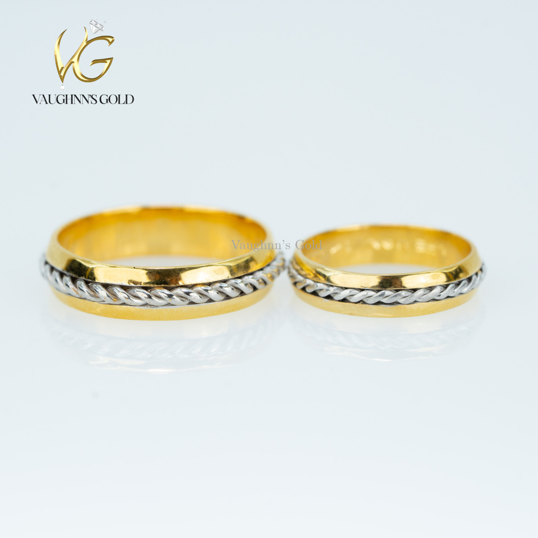 A timeless symbol of unity and balance. Em’s Eternal Gold ring is beautifully crafted in solid yellow and white gold, featuring a sleek yellow gold band accented with an elegant woven white gold detail at the center. The two-tone design creates a striking contrast—classic yet modern, subtle yet distinctive.
