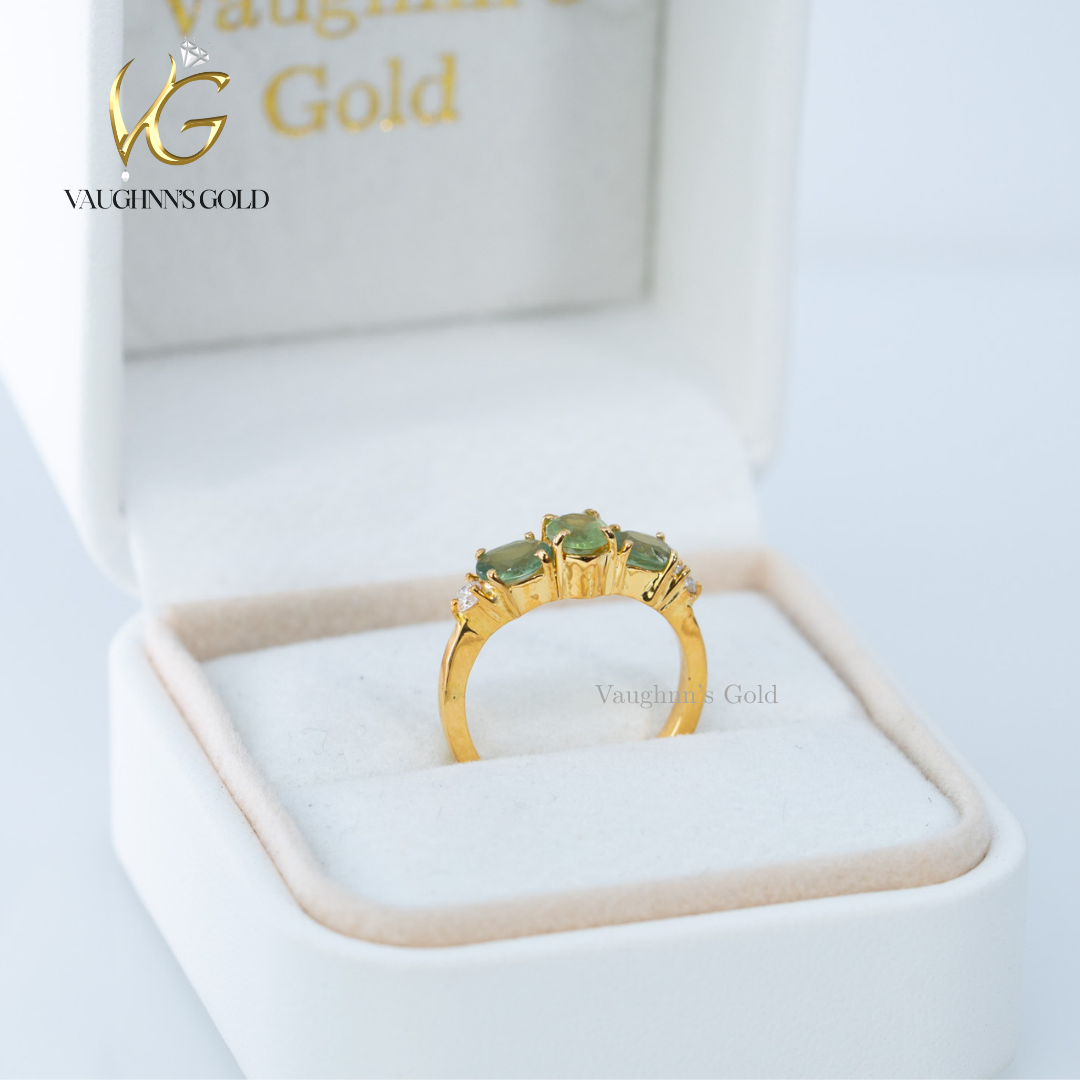 - Gemstone Size: 0.50 ct (Oval/Center) and 0.50 ct (Round/Sides)