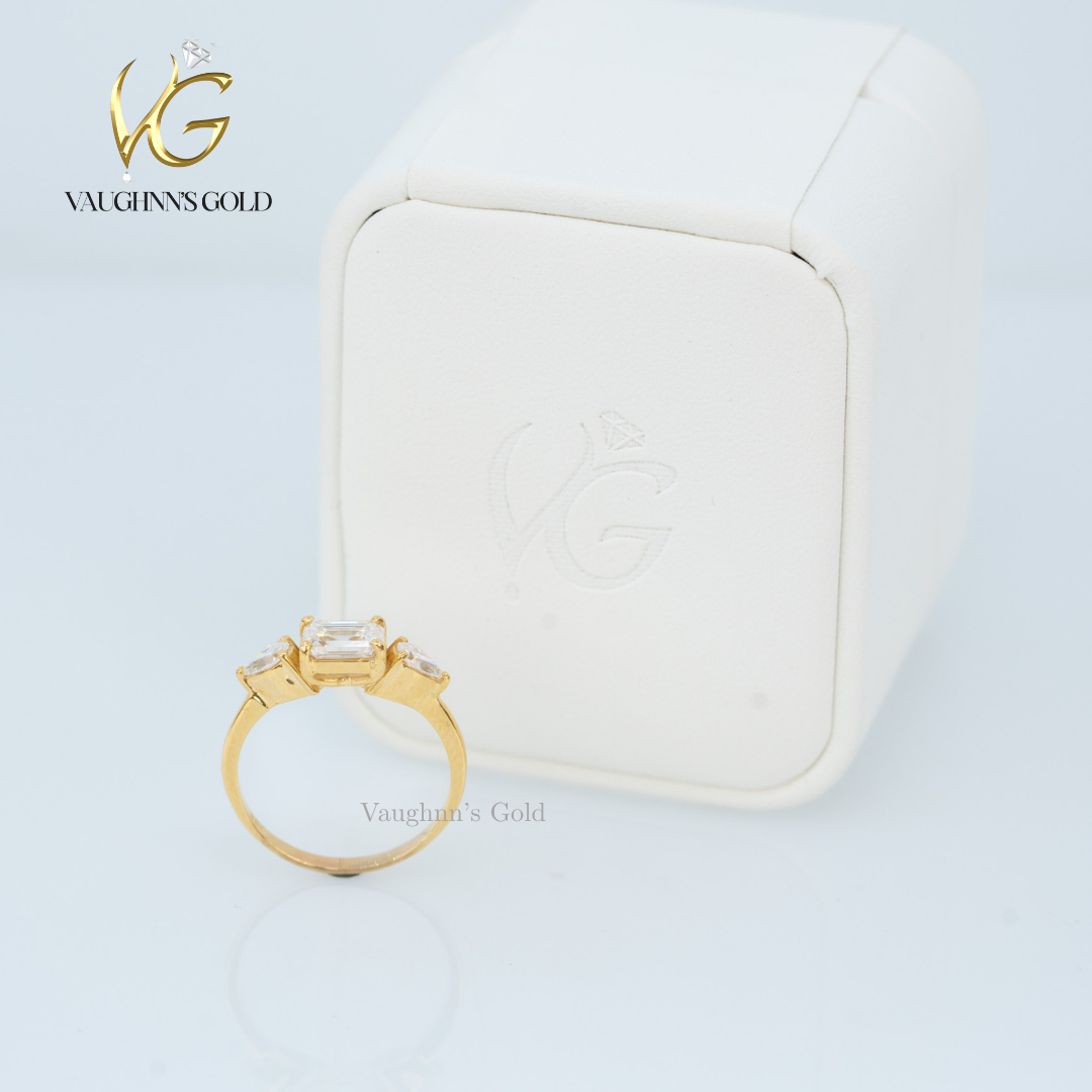 Lavinia showcases timeless elegance with its solid yellow gold construction and brilliant 1ct emerald cut. The radiant's geometric facets create exceptional sparkle and depth, while the warm glow of yellow gold enhances the stone's natural beauty. A refined choice for those who appreciate classic luxury with contemporary brilliance.