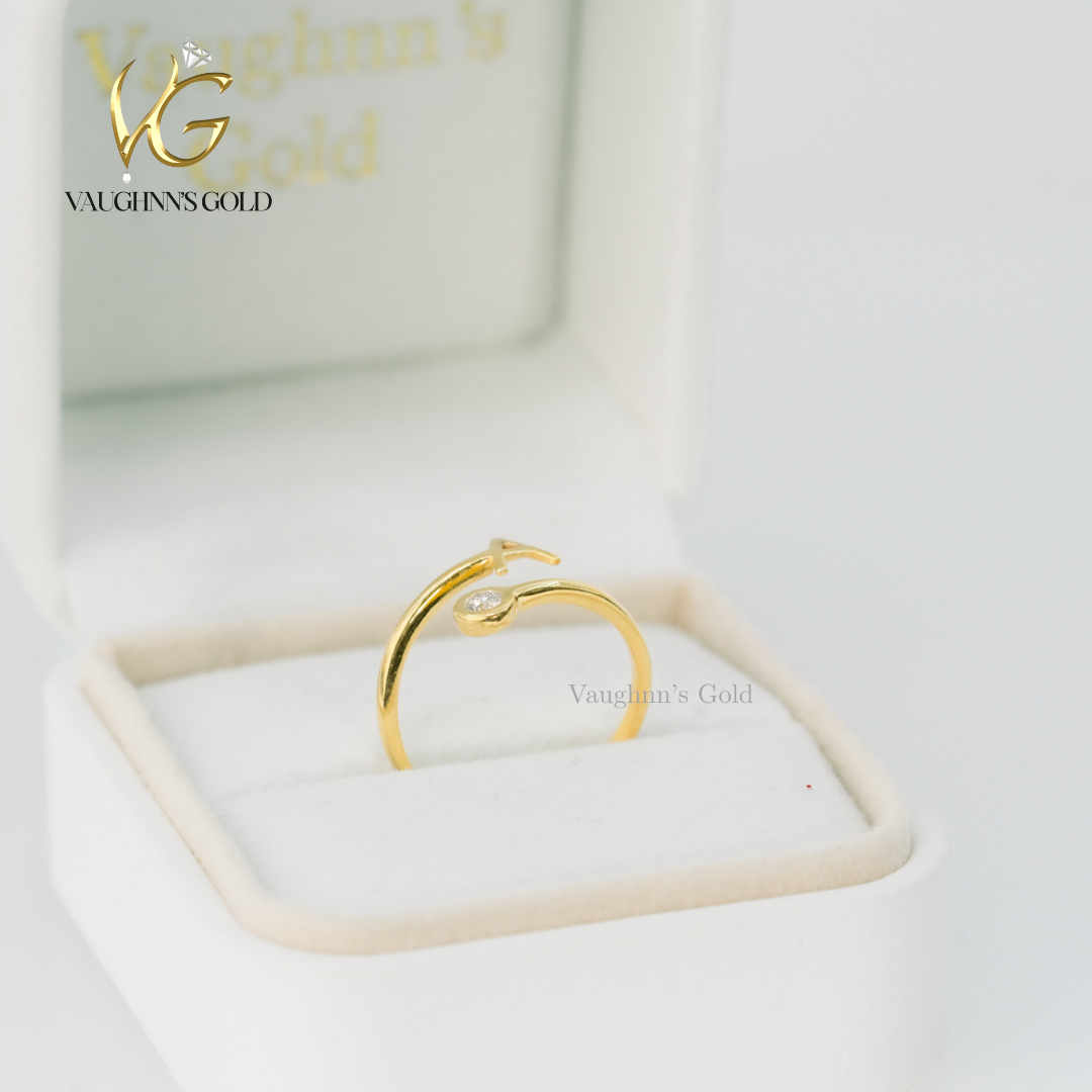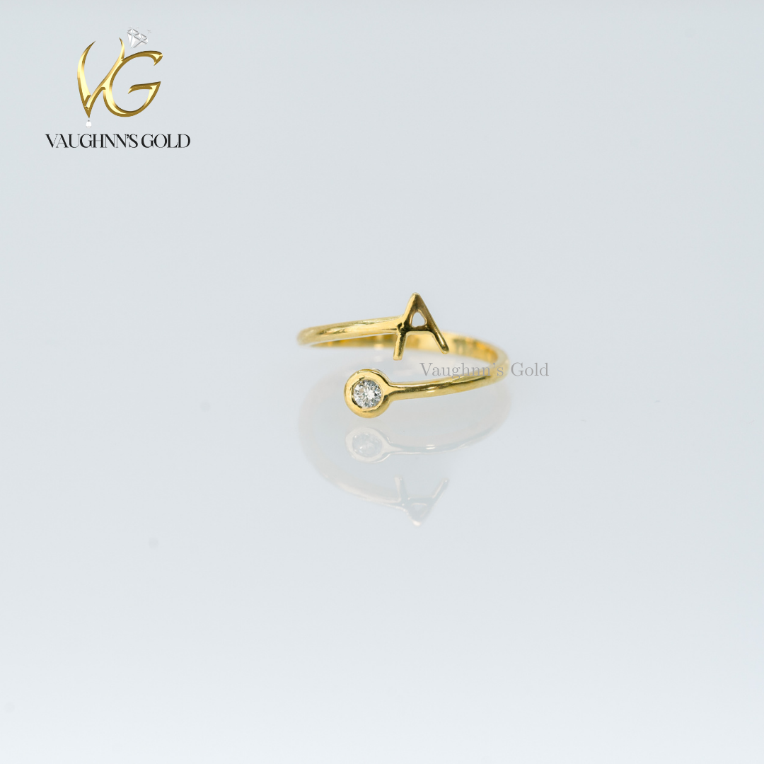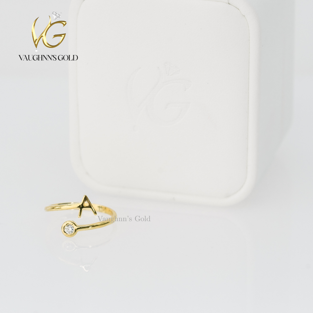 Personalize your style with this elegant 18K solid yellow gold ring, crafted to showcase your chosen letter. Each piece is customized to your preference, making it a meaningful accessory that celebrates your individuality. A timeless investment in refined luxury.