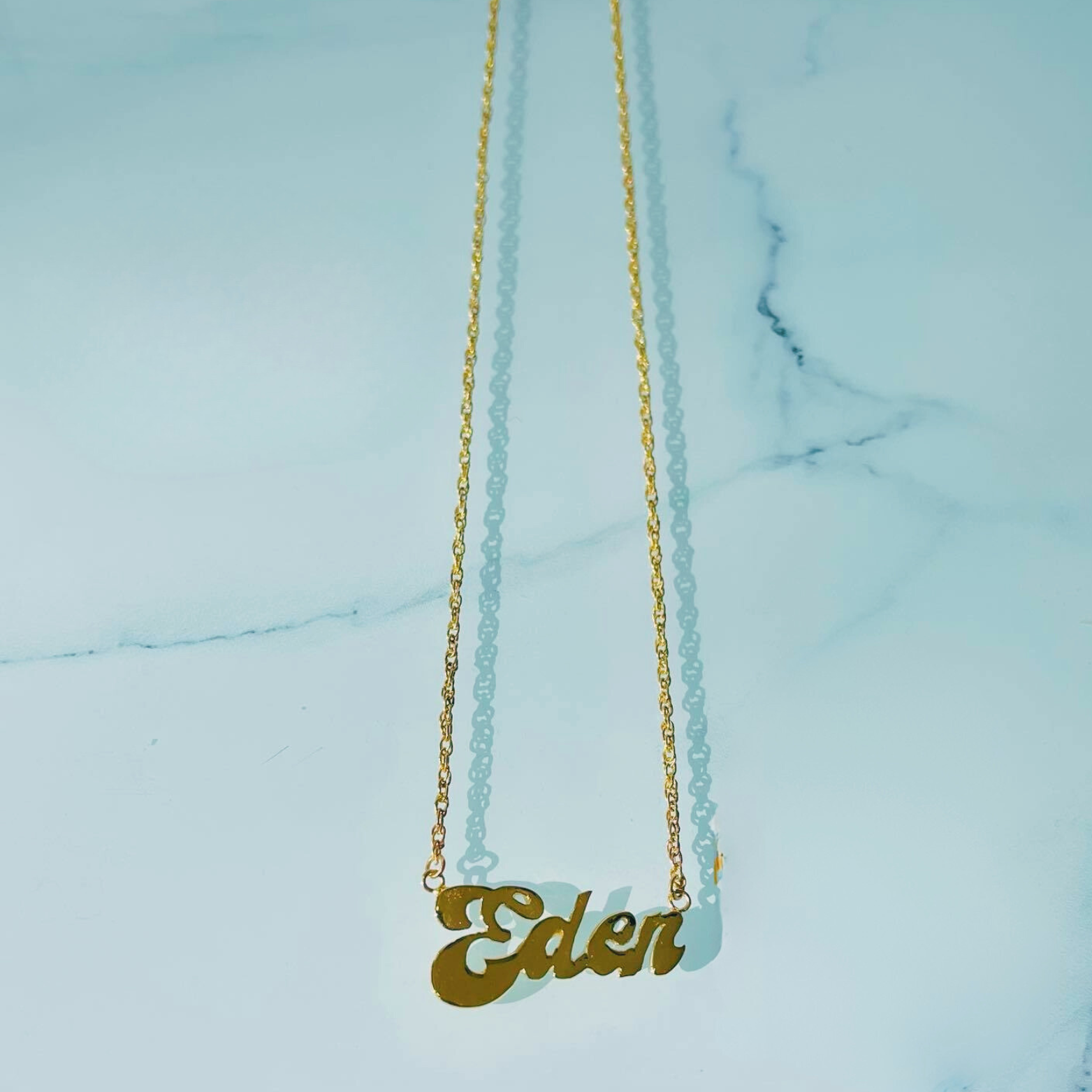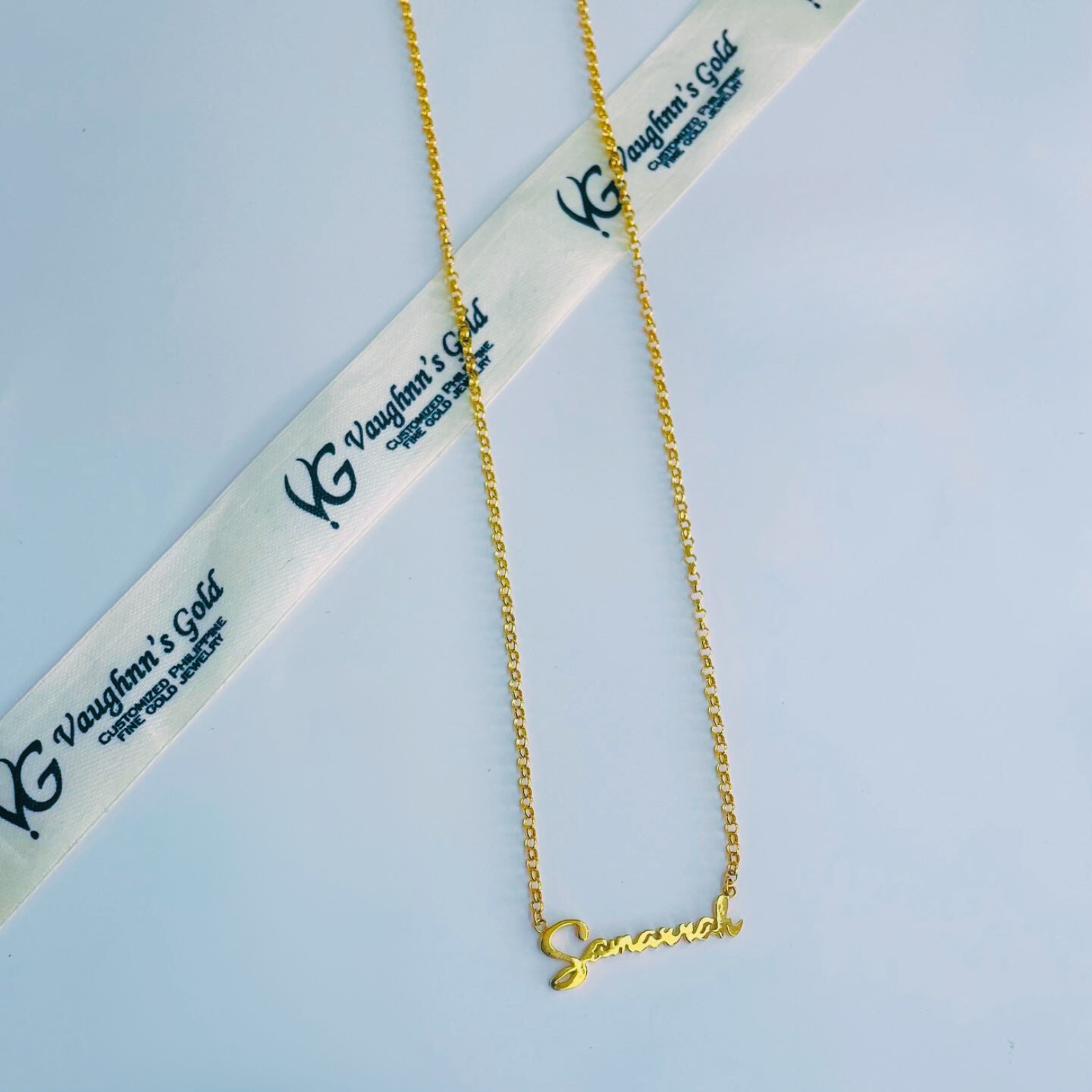 Stand out and make a statement with our Name Necklace. Personalize your look and show off your unique identity. Embrace your individuality by wearing your name proudly around your neck!