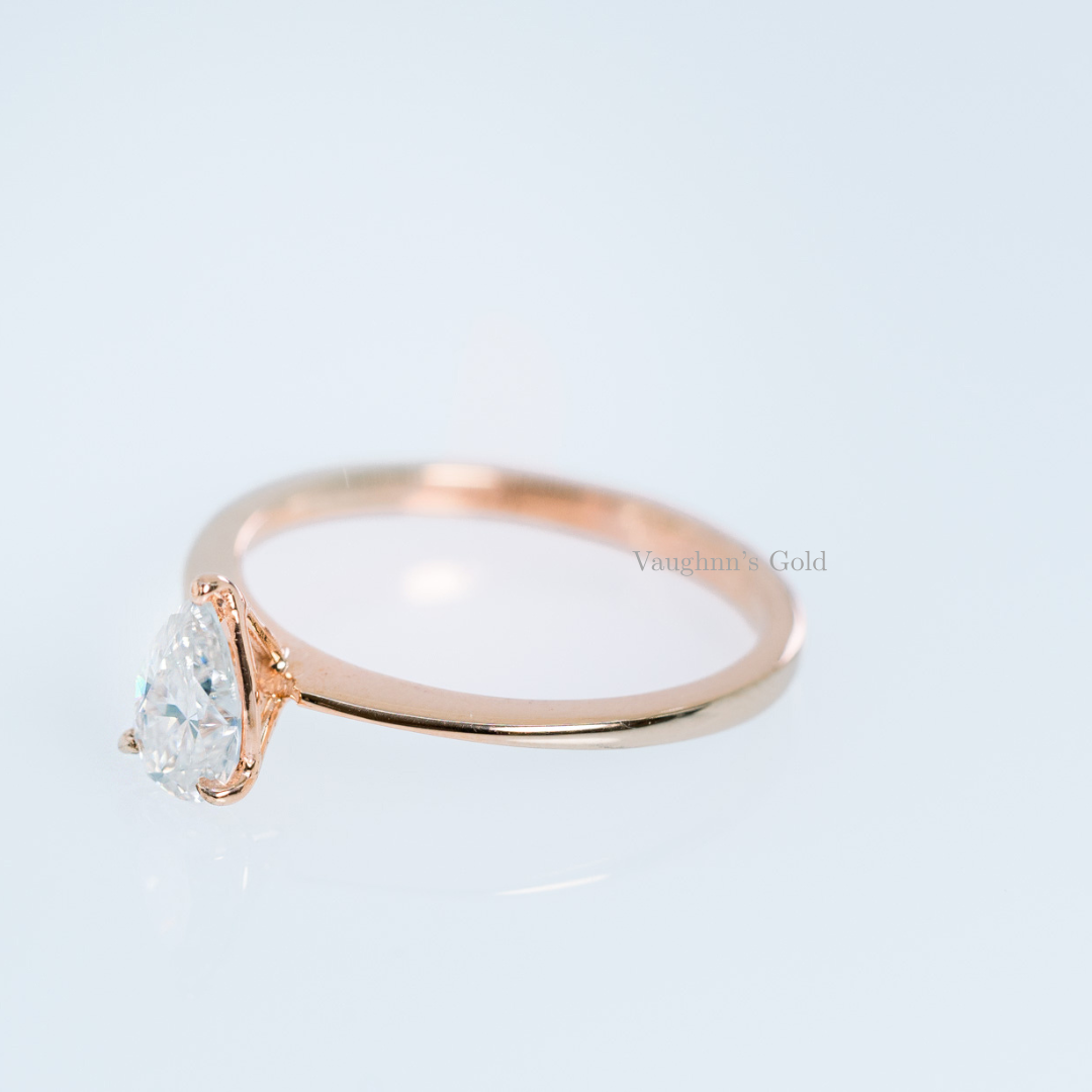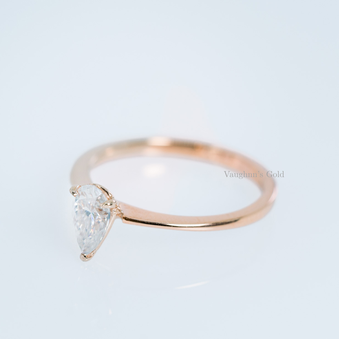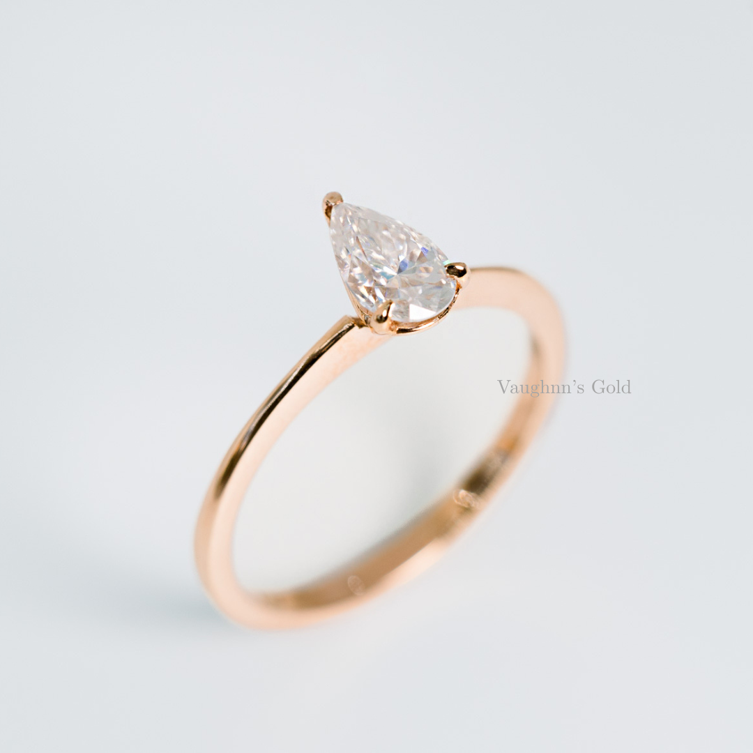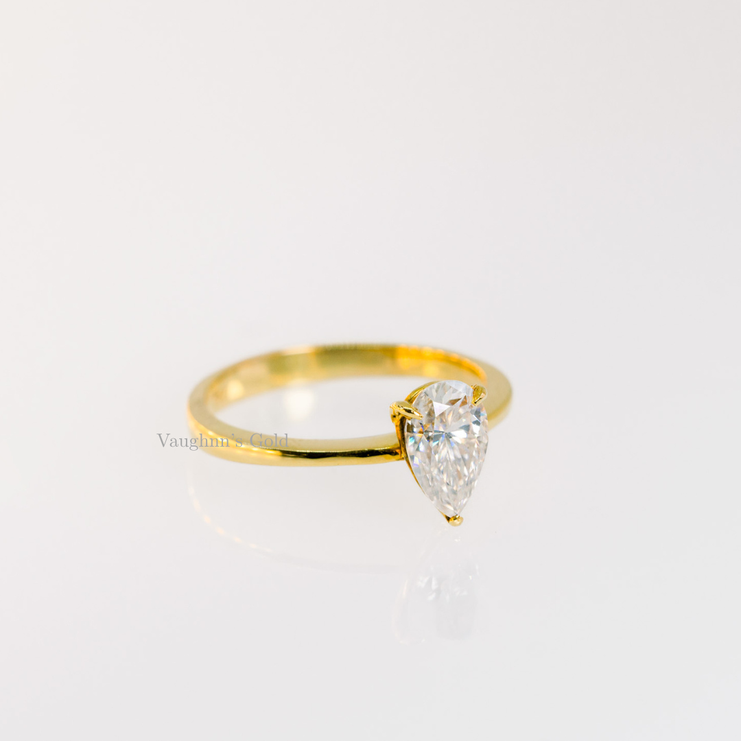 Pia offers a beautifully simple and elegant design, featuring a 1ct pear-cut moissanite center stone that shines with timeless charm. This ring is an ideal choice for engagements, symbolizing a pure and lasting connection. Its understated grace makes it a meaningful way to celebrate your unique love story.