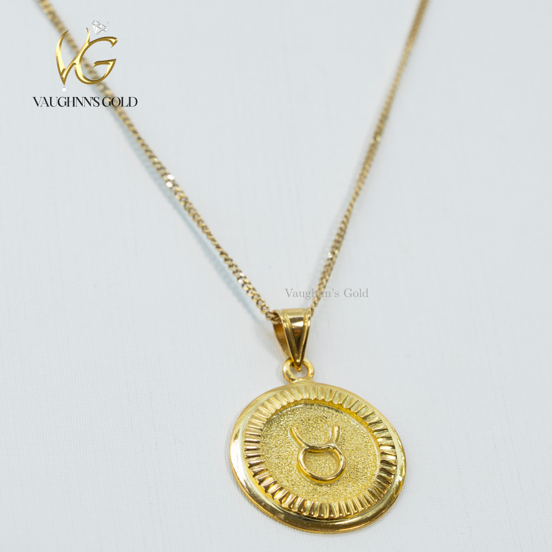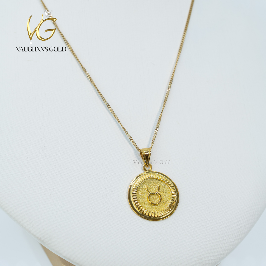 Embrace your celestial identity with this refined Taurus pendant necklace, meticulously crafted in lustrous 18K yellow gold. The elegant zodiac design captures the essence of strength and stability, making it a timeless addition to any jewelry collection. Perfect for those born under this earth sign or as a meaningful gift for someone special.